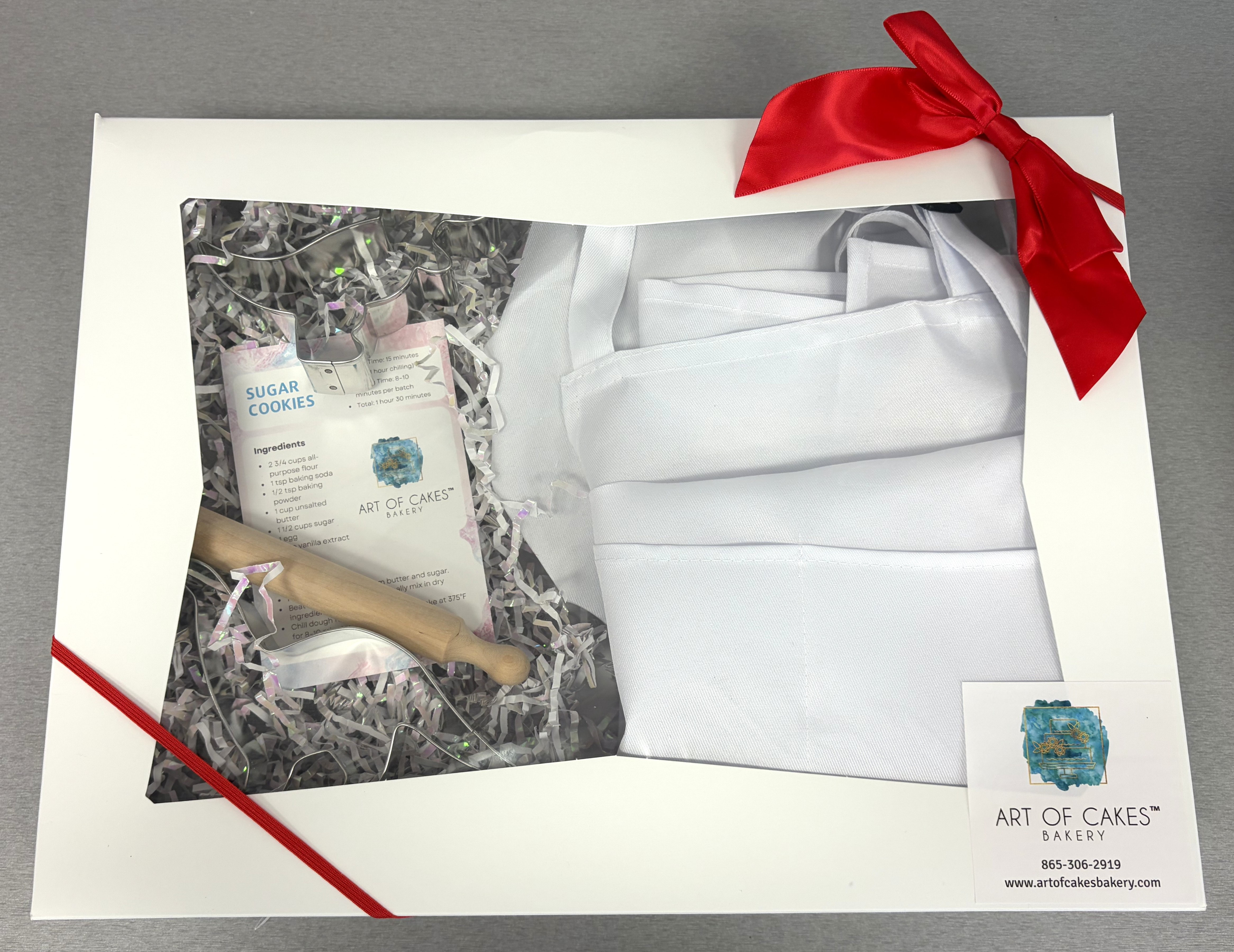 Baking Gift Set - White Apron - T-Rex & Brontosaurus Cutters
